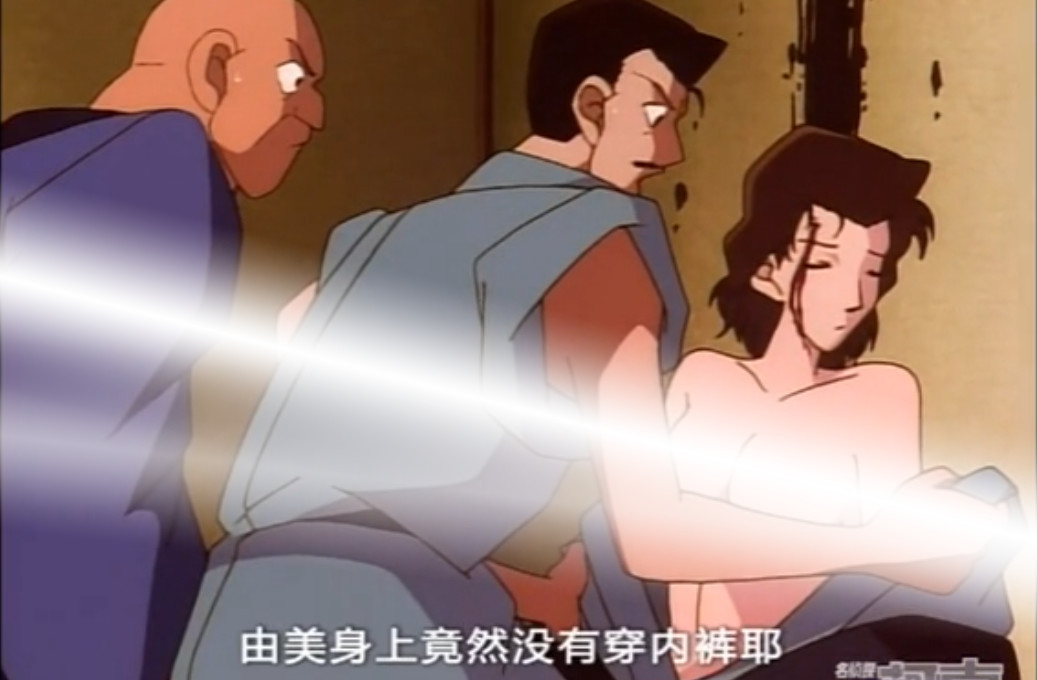 毛利小五郎大叔又在做不好的事了,直接看光了由美。为了不影响大家的眼睛,笔者特意加了个圣光,这样比较妥当点。当然,动画里是没有圣光的。话说大叔到底是在看哪里?看到了什么呢,为什么还说那句话。总之这张图无论是画面还是文字,都是未成年不能看的。